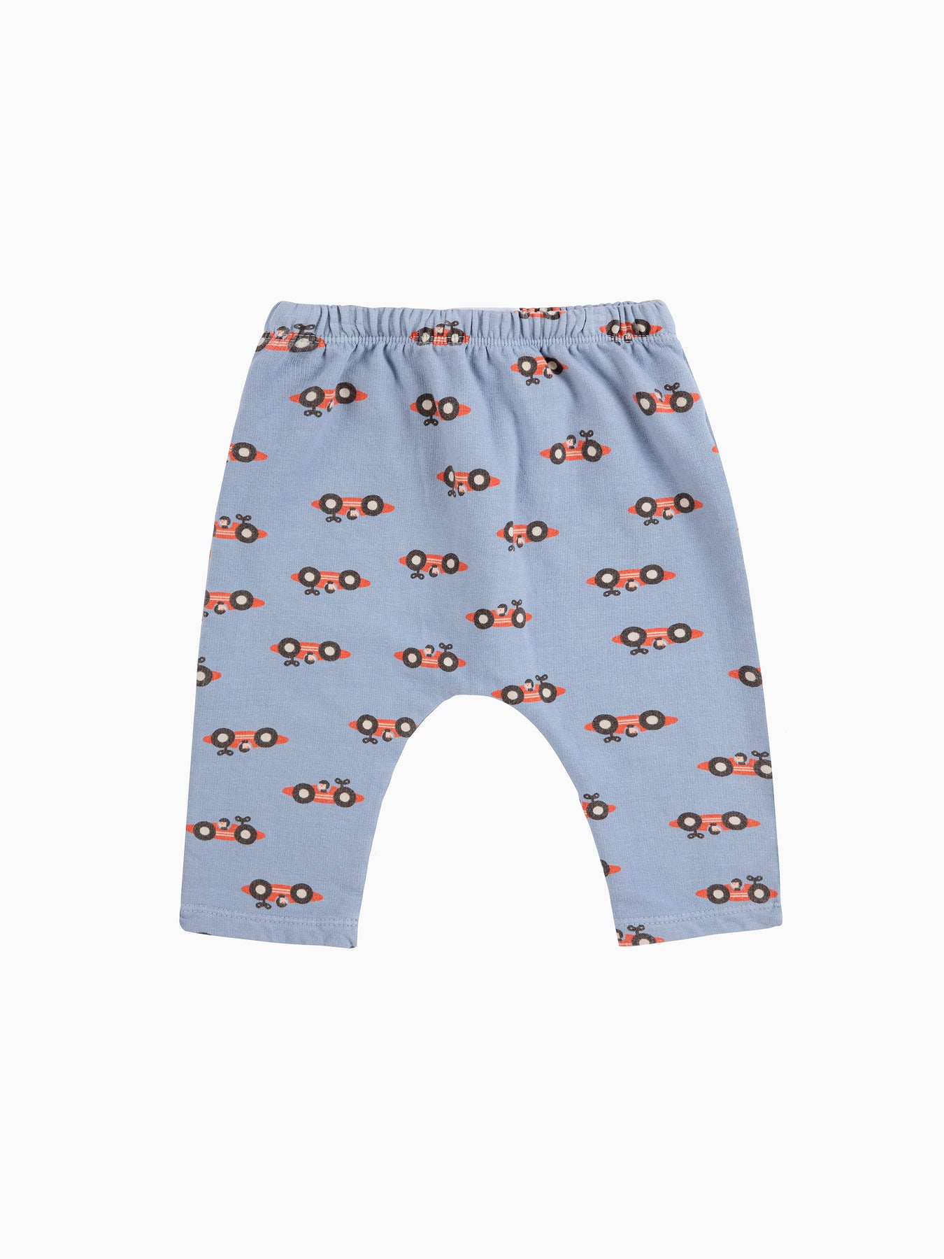 The Race Car Jogging Pants by Bobo Choses are crafted from a soft and stretchy blend of cotton, featuring a cheerful all-over race car print, elasticated waistband, baggy fit, and a brushed fleece interior for extra coziness.