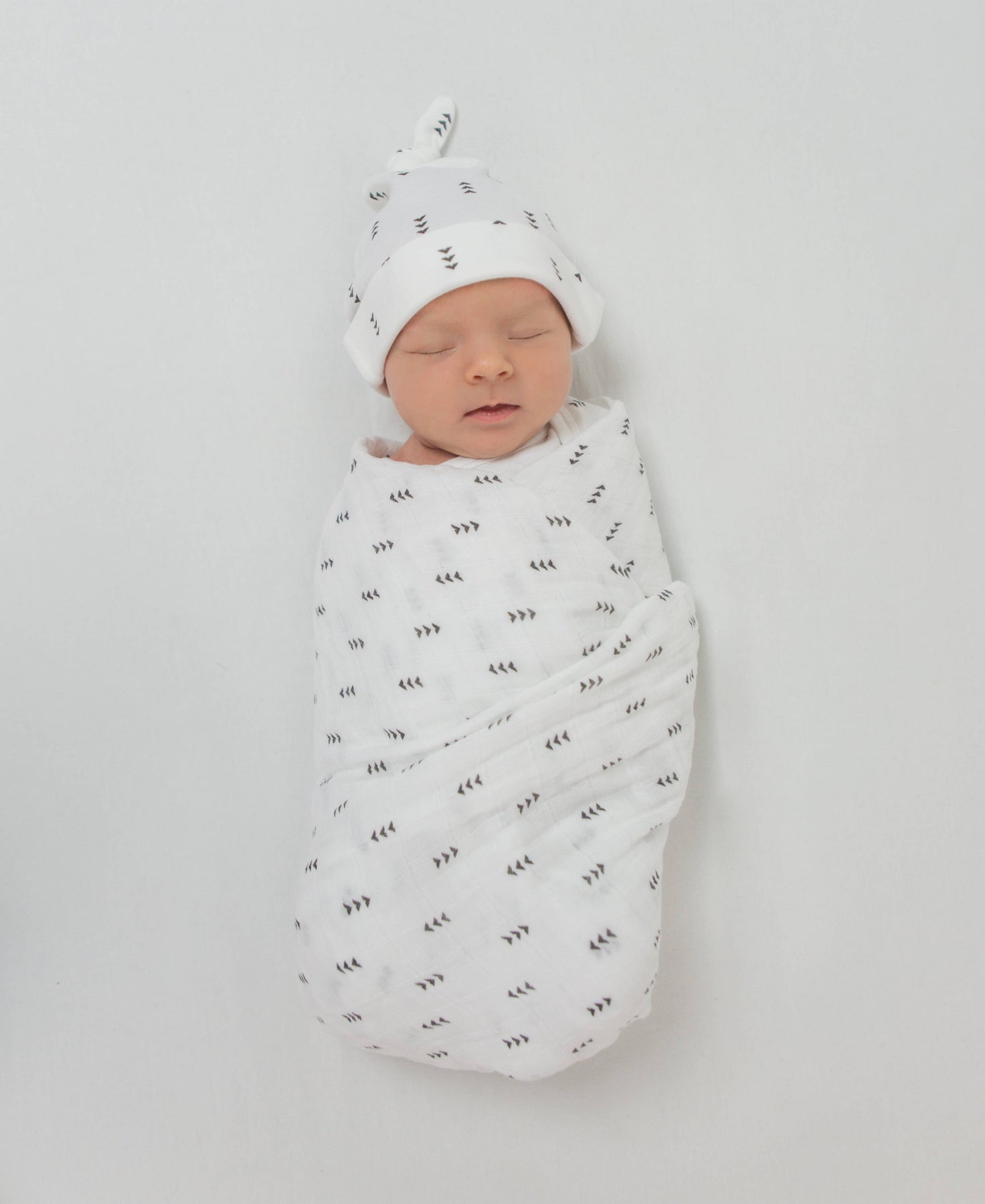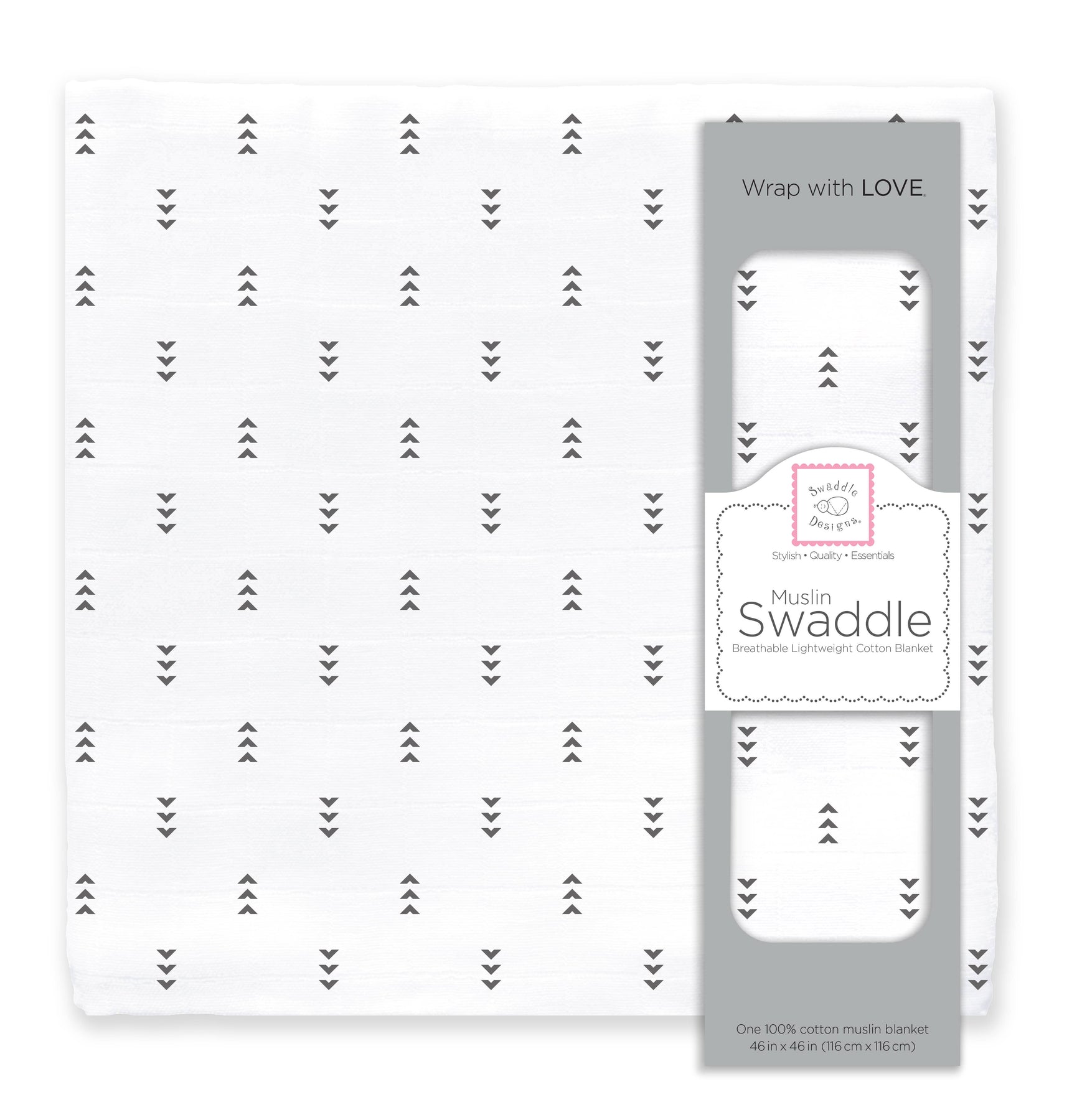 The Tiny Arrows Muslin Swaddle Blanket can be used as a playmat for tummy time, a privacy throw for feeding baby, a sun shield or a burp cloth over mom or dad's shoulder.