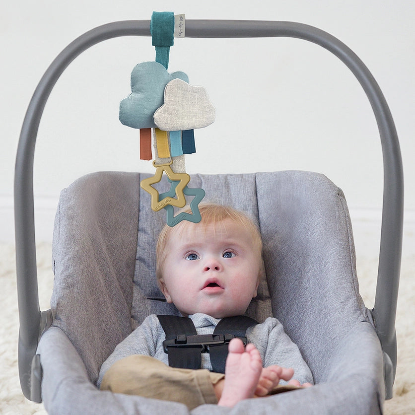 The Bitzy Bespoke Ritzy Jingle Travel Toy by Itzy Ritzy has sensory design in mind. This toy is crafted with soft natural cotton & features a jingle ball inside to envelop baby with its gentle sound. Easily fasten the Ritzy Jingle onto a car seat, stroller, or activity gym for adventures ahead!