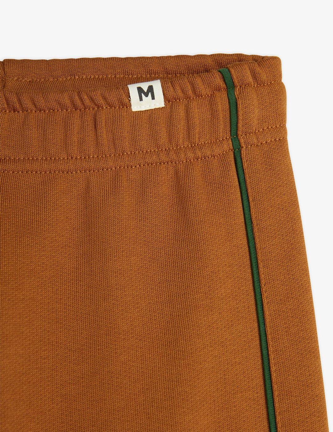 The Brown Piping Sweatpants by Mini Rodini! These sweatpants feature a contrasting green piping along the side of the sweatpants. Made from 100% GOTS certified organic cotton.