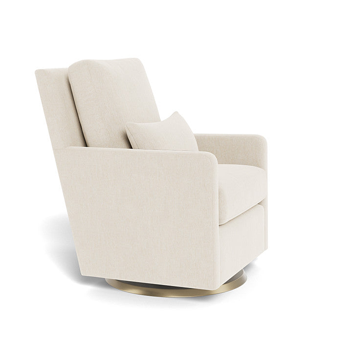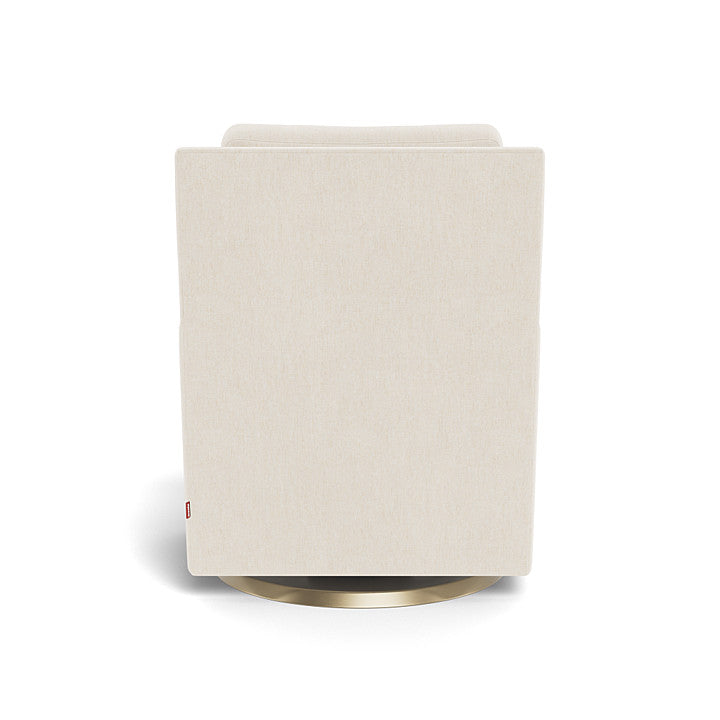 Chair is in Performance Dune with a Matte Gold Swivel base and matching Dune pillow.