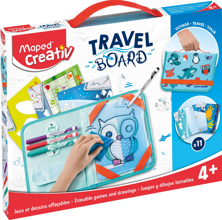 The Transparent Travel Board 18 Piece Drawing Kit by Janod is perfect for on the go! This travel board helps children build creativity and drawing skills anywhere! Use the included magnets on the dry-erase board to create totally unique characters over and over again, and then wipe everything up with the included cloth. Includes 1 case, 1 magnetic dry-erase board, 4 markers, 14 magnetics and 1 microfiber cloth. And everything is easy to store, with integrated straps, clips, and a pocket to make sure nothing gets lost!