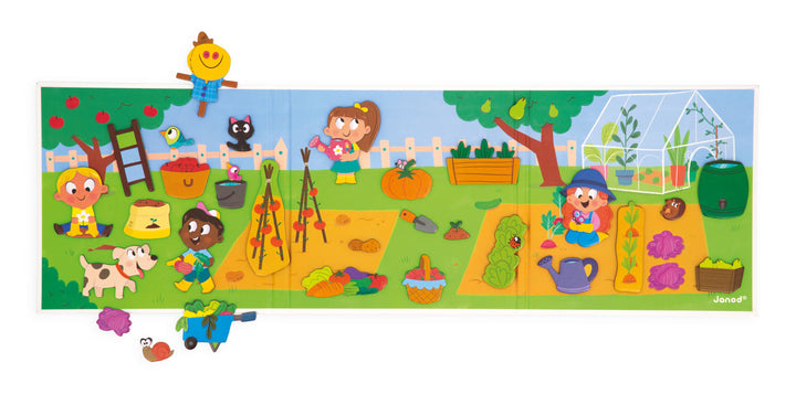 Learn the joys of gardening with the Magnetic Book- Garden by Janod! This magnetic game includes a magnet set and 30 magnets. Fine motor skills will be developed by grasping the magnetized pieces. This magnetic game is made from FSC™-certified cardboard and controlled materials.