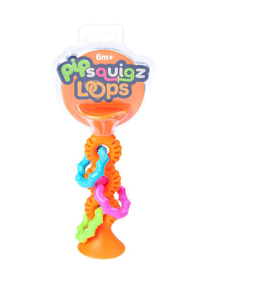 With Pip Squigz Loops Rattle by Fat Brain Toys, little explorers can’t help but get sucked into the sensory excitement of these bendy, rattly, suction-cup creations!