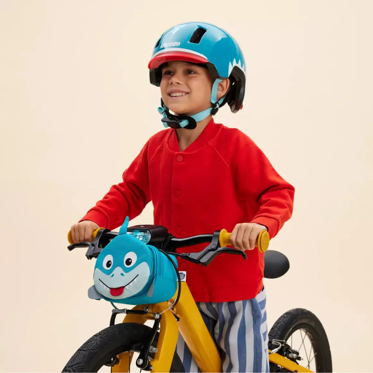 The Shark Handlebar Bag by Affenzahn is made to fit on the front handlebars of their bike or scooter. Ideal for all, the animal handlebar bags are a new best friend for your little one. This shark handlebar bag features reflectors and enough space to carry small treasures on the go. A great attachment for strollers, scooters, and bikes!