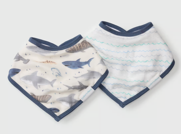 The Loulou Lollipop Sharks Bandana Bibs are made with ultra-absorbent bamboo terrycloth backing and irritation-free neck panels. The bandana bibs are the softest (and cutest) solution for teething, dribbles, and spit-ups—designed to grow with babies up to 3 years old.