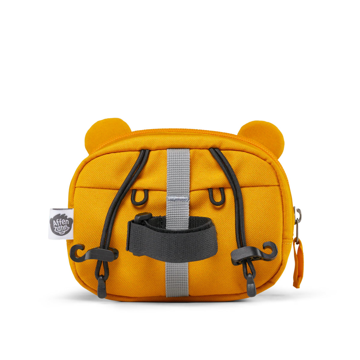 The Tiger Handlebar Bag by Affenzahn is made to fit on the front handlebars of their bike or scooter. Ideal for all, the animal handlebar bags are a new best friend for your little one. This tiger handlebar bag features reflectors and enough space to carry small treasures on the go. A great attachment for strollers, scooters, and bikes!