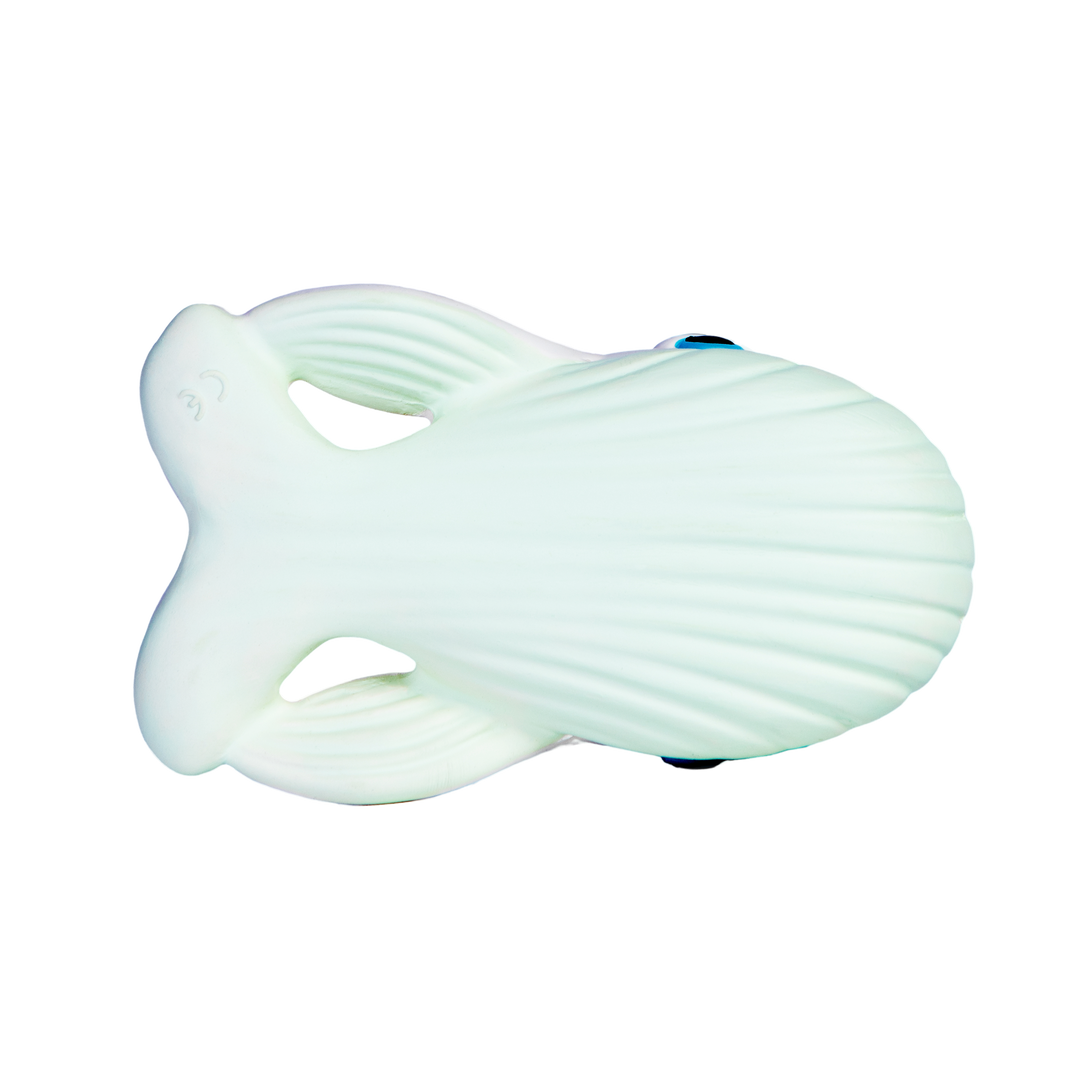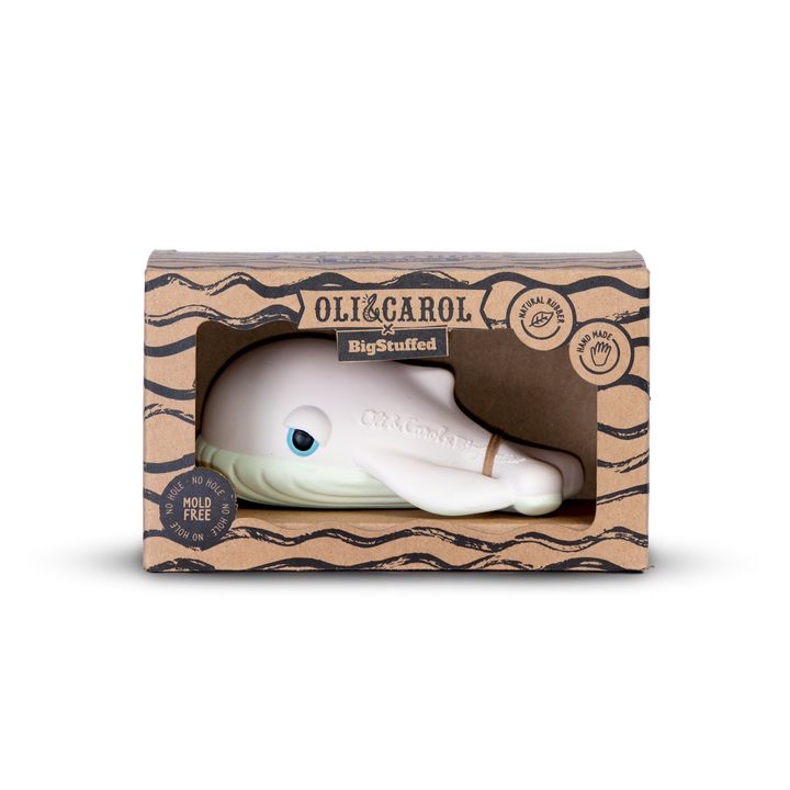 Walter the Whale by Oli and Carol is a natural rubber toy that can be used for bath time, teething and sensory play! It’s made out of one piece with no hole, making it perfect for worry-free play. And it’s different textures will help stimulate babies’ senses.